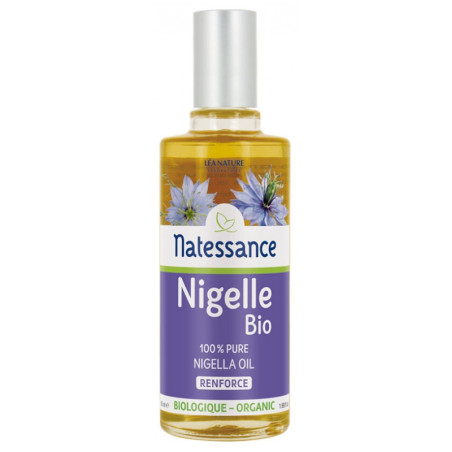 Natessance Huile de Nigelle Bio 50 ml est une huile 100% pure certifiée biologique formulée avec de l'huile vierge de graines de cumin noir de pression à froid sans additif.