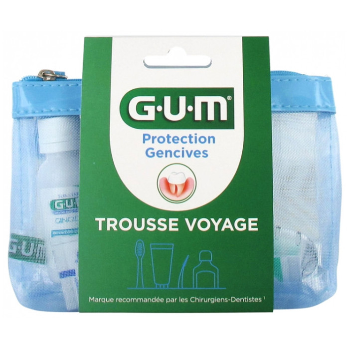 Gum Trousse Voyage Protection Gencives est un kit nécessaire pour une hygiène bucco-dentaire parfaite durant les vacances, dans une trousse pratique en format voyage :