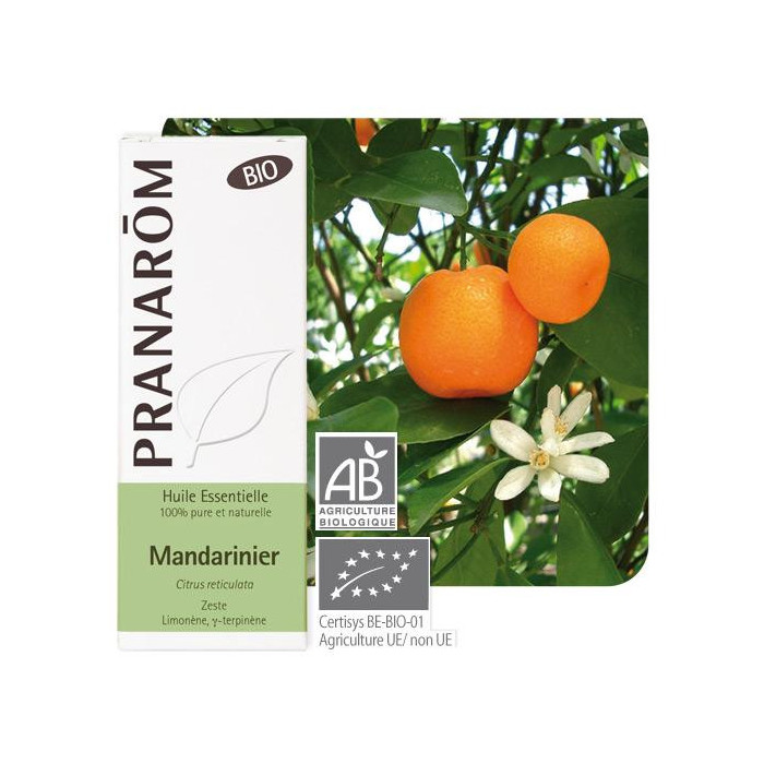 L'huile essentielle Bio zeste de mandarine pranarôm est ussie d'une plante originaire de Chine. La mandarine doit son nom aux mandarins chinois qui recevaient ce fruit en cadeau par tradition. L'huile essentielle de mandarine est utilisée comme Tonique digestif (carminative, laxative douce), Antiseptique, Modératrice du système nerveux central (relaxante, sédative, hypnotique légère) et possède des propriétés calmantes du système nerveux sympathique. Elle est particulièrement recommandée en cas de Dyspnée, Extrasystoles, palpitations, hypertension, aérophagie, constipation, Insomnie, angoisse, stress, agitation, Obésité et cellulite.