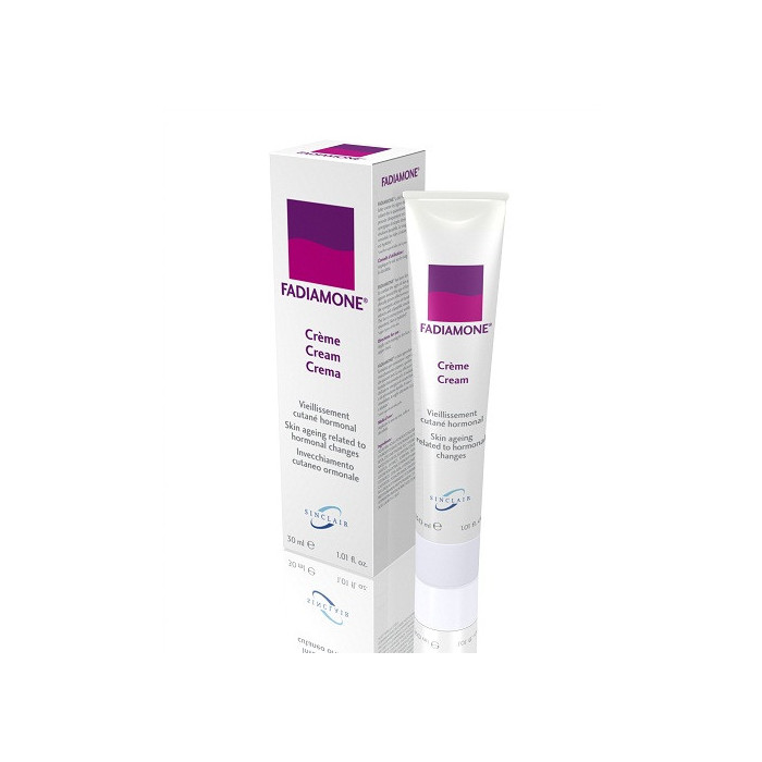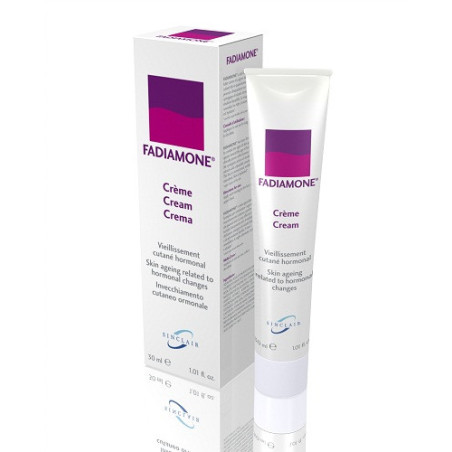 De nombreux travaux l'ont démontré: dès la quarantaine, la peau de la femme est soumise à des modifications hormonales. La peau se dessèche et s'amincit, elle perd de sa tonicité. Le teint devient plus pâle et terne. Des ridules apparaissent. Pour lutter contre les signes du vieillissement dès la quarantaine, Sinclair Pharma France a développé et formulé FADIAMONE. L'efficacité de FADIAMONE est liée à l'action synergique d'Extraits titrés et d'une émulsion lipophile.