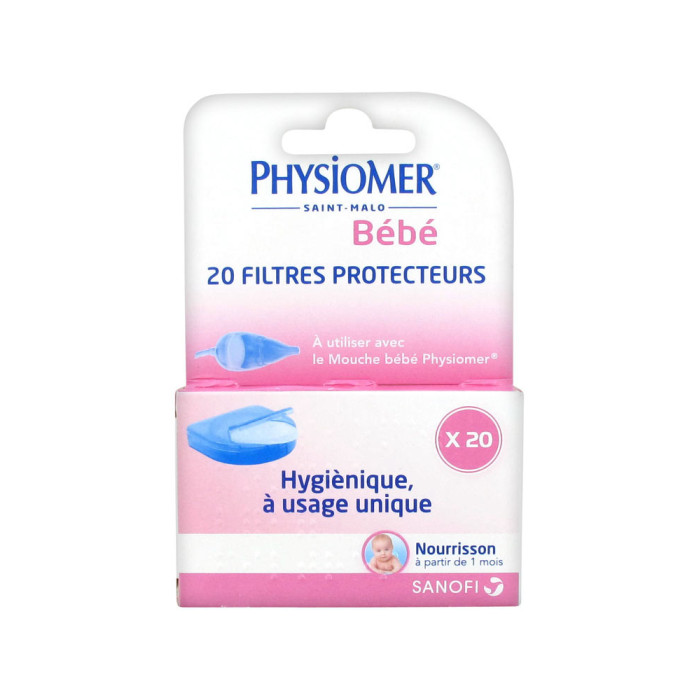 Les Filtres Protecteurs Physiomer à usage unique assurent une utilisation hygiénique du Mouche Bébé Physiomer, en bloquant le mucus aspiré dans la partie avant du dispositif.