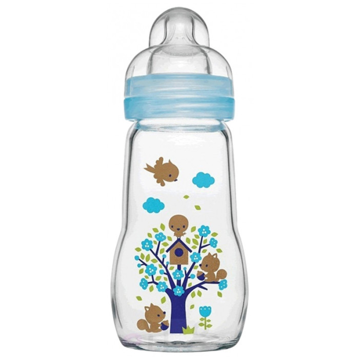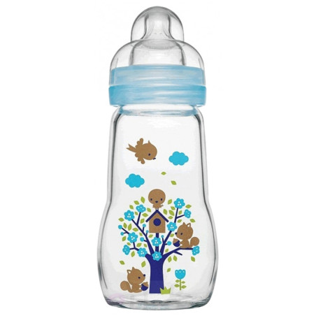 MAM Biberon Verre 260 ml Tétine Silk 2 Mois et + - Couleur : Bleu est un biberon en verre Premium, un verre spécifique (borosilicate) résistant aux chocs thermiques.