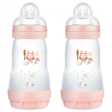 MAM Easy Start 2 Biberons Anti-Colique Couleurs de la Nature 260 ml 2 Mois et + Débit 2 - Couleur : Blush est un biberon compatible avec l'allaitement maternel dont le système anti-colique est innovant.