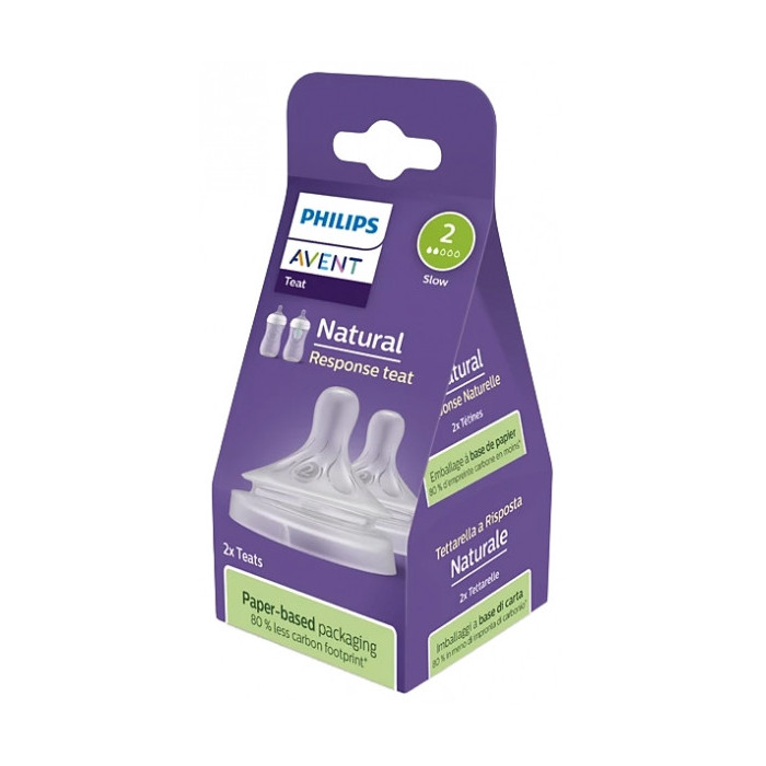 Avent Natural Response 2 Tétines Débit 2 Lent sont des tétines qui imitent la forme du sein maternel, facilitant ainsi la combinaison de l'allaitement maternel et du biberon.