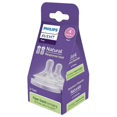Avent Natural Response 2 Tétines Débit 4 Rapide sont des tétines qui imitent la forme du sein maternel, facilitant ainsi la combinaison de l'allaitement maternel et du biberon.