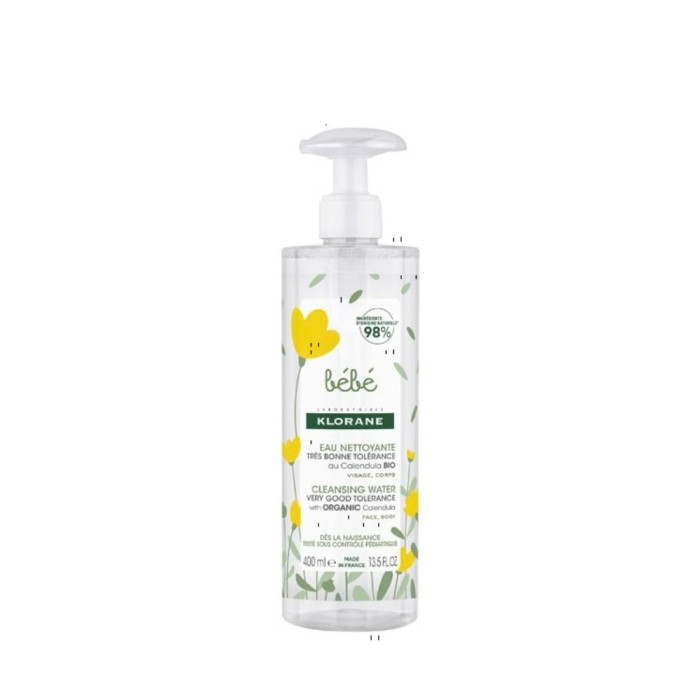L’eau nettoyante sans rinçage la marque Klorane Bébé est un soin élaboré spécialement pour la toilette quotidienne des tout-petits. Elle peut être appliquée aussi bien sur le corps que sur le visage et ne nécessite pas d’être rincée. Cette eau nettoyante permet de retirer en douceur les impuretés et les saletés qui se sont déposées sur la peau fragile de bébé tout en la rendant plus douce. Elle participe à l'équilibre du microbiome cutané, respecte le film hydrolipidique et possède également des vertus apaisantes, notamment sur les irritations.