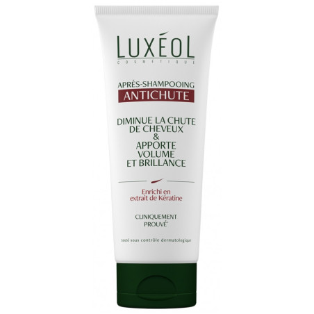 Luxéol Après-Shampoing Antichute 200 ml est un soin capillaire enrichi en kératine, élaboré pour diminuer la chute de cheveux et apporter volume et brillance.Les cheveux sont visiblement plus résistants, plus doux au toucher, et retrouvent leur vitalité.
