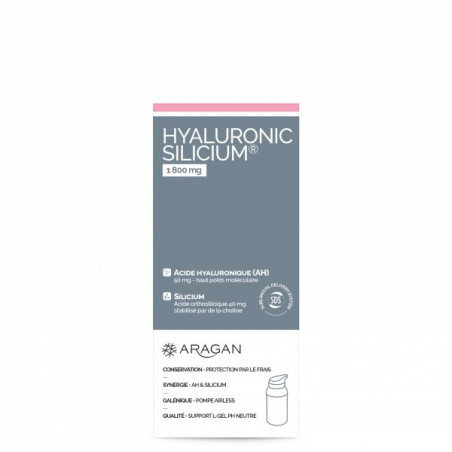 - Avec l'âge, sa quantité diminue progressivement. De 30 à 50 ans, on perd la moitié de l'acide hyaluronique présent dans l'organisme.Hyaluronic Silicium au silicium actif contient du silicium qui est un structurant de