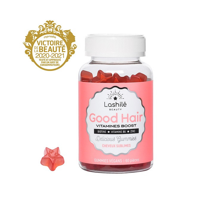 Lashilé Beauty Good Hair Vitamines Boost Cheveux Sublimes 60 Gommes sont des gommes vitaminées spécialement conçues pour la beauté et la pousse des cheveux. Elles contiennent des arômes naturels de fruit.