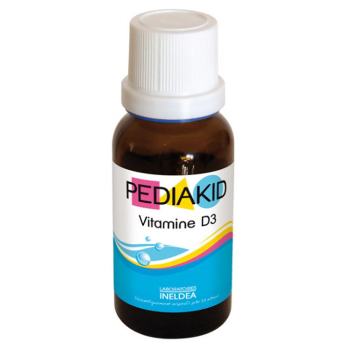 Pediakid Vitamine D3 20 ml est un complément alimentaire à la vitamine D. Riche en vitamine D3 d'origine naturelle, il contribue à absorber le calcium et le phosphore et à entretenir les os et dents. Il contribue aussi à un bon fonctionnement musculaire et immunitaire.