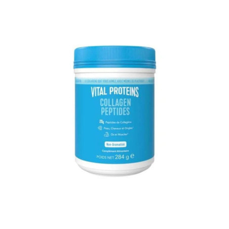 Collagen Peptides de Vital Proteins est un complément alimentaire à base de peptides de collagène destiné à soutenir le bien-être de l'intérieur tout en améliorant l'apparence de la peau, des cheveux et des ongles. Sa formule a été développée scientifiquement afin de maximiser les bénéfices. Les peptides de collagène améliorent la fermeté et l'élasticité de la peau, renforcent les cheveux, fortifient les ongles et participent au maintien d'une ossature et d'une masse musculaire normales¹ .
