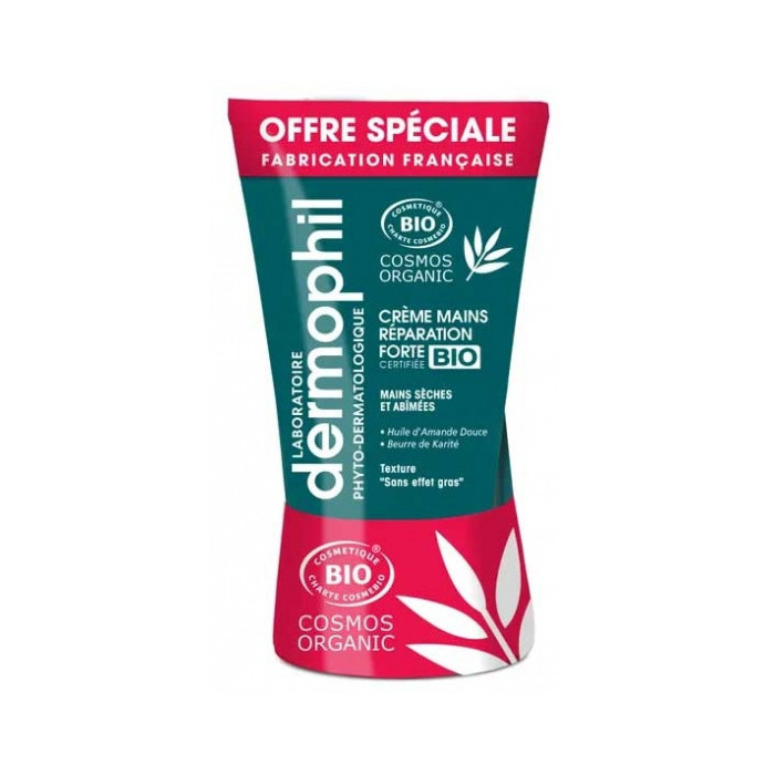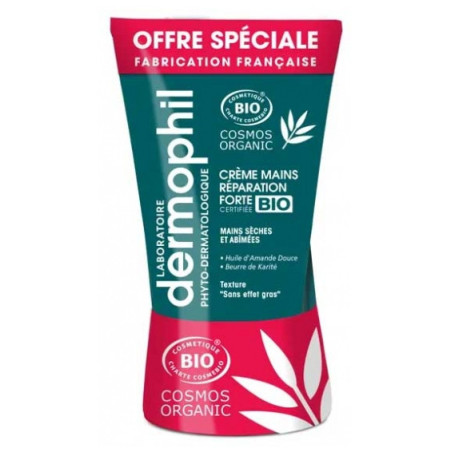 Dermophil Indien Crème Mains Réparation Forte Bio - Lot de 2 x 75 ml