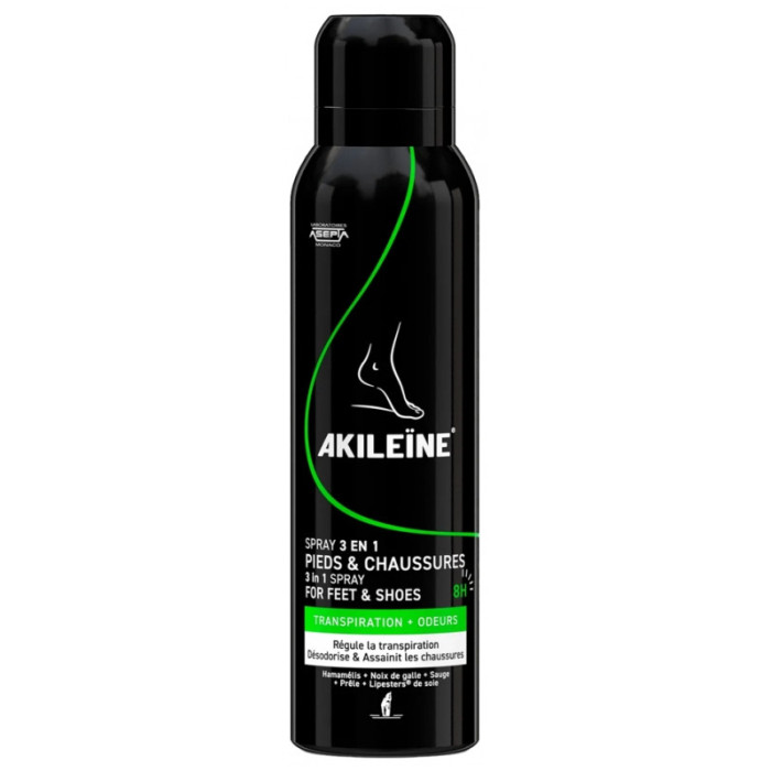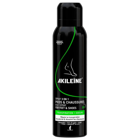 Akileïne Spray Pieds et Chaussures 150 ml est un spray triple action qui régule la transpiration excessive des pieds, désodorise et assainit l'intérieur des chaussures.