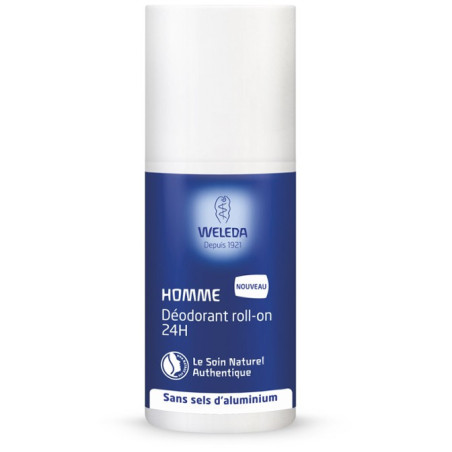 Weleda Déodorant Roll-on 24 H Homme 50 ml est un déodorant qui prévient et neutralise naturellement la formation des odeurs désagréables, sans bloquer la transpiration.Sans sels d’aluminium, ce déodorant à la fragrance tonique et rafraîchissante, avec huiles essentielles de vétiver et litsea cubeba, apporte bien-être et efficacité pendant 24 heures.Cosmétique naturel en partie biologique : au moins 70 % des ingrédients naturels sont d'origine biologique. Tolérance et efficacité testées cliniquement sous contrôle dermatologique.