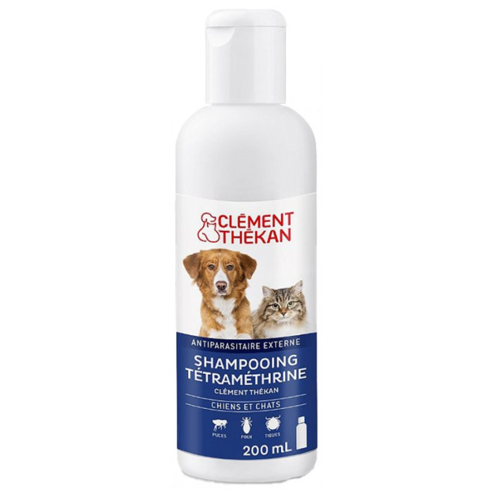 Clément Thékan Shampoing Tétraméthrine Chiens et Chats 200 ml est un shampoing antiparasitaire pour chiens et chats à base de tétraméthrine.