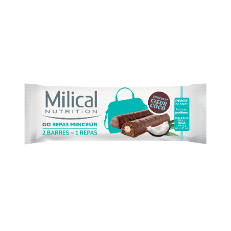 Go repas minceur 2 barres fondantes Riches en Protéines Saveur chocolat Noir et caramel 1 repas = 2 barres = 225 kcal Pratiques, les barres Go Repas Minceur sont un repas minceur complet, riches en protéines (16,6g / portion) contenant tous les nutriments essentiels à un repas. Les substituts de repas : pour qui, pourquoi ? Quotidiennement,pour celles qui ont un objectif de perte de poids. Régulièrement,pour celles qui désirent maintenir leur poids. Ponctuellement,pour celles qui souhaitent compenser un excès. Les substituts de repas : comment ? Pour contribuer à la perte de poids, remplacer le déjeuner et le dîner d'un régime hypocalorique par 2 barres Go Repas Minceur
