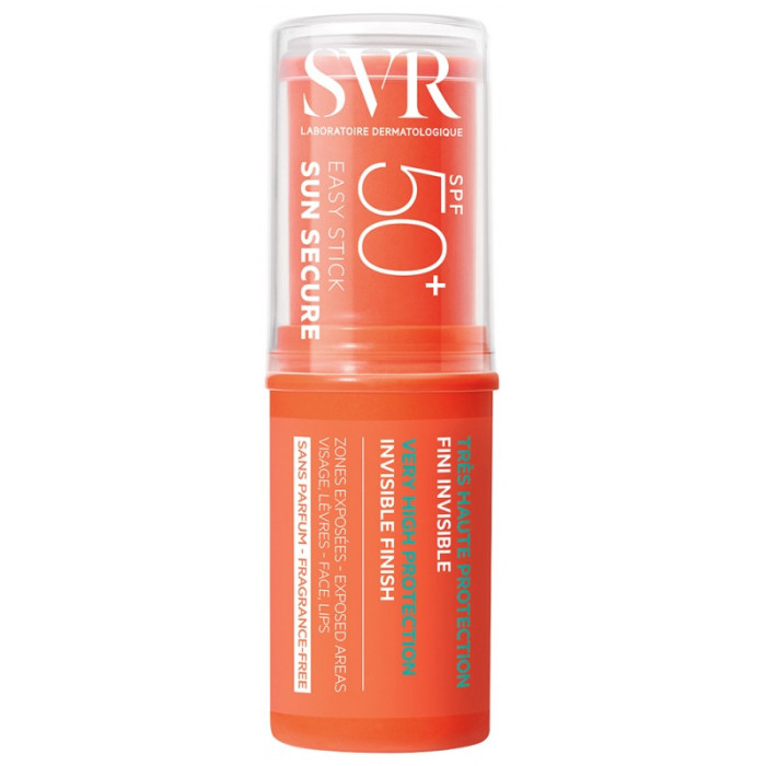 SVR Sun Secure Stick Rechargeable SPF50+ 10 g est un stick à très haute protection invisible pour peaux particulièrement sensibles dans un mini format de poche ultra nomade.