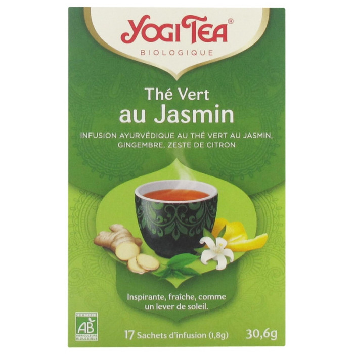 Yogi Tea Thé Vert au Jasmin Bio 17 Sachets est une préparation Bio pour infusion ayurvédique à base de thé vert au jasmin, de gingembre et de plantes.Avec la douceur du jasmin et la fraîcheur du citron, cette infusion vous accompagne doucement en vous revigorant pour accueillir le soleil. Une telle matinée promet une belle journée.