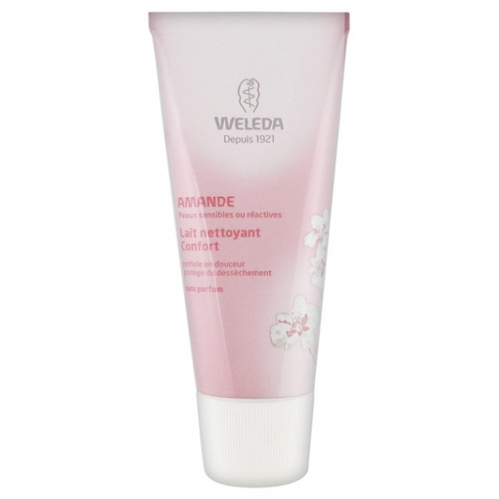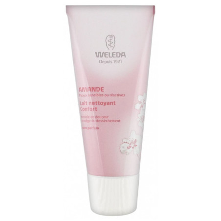 Weleda Lait Nettoyant Confort à l'Amande 75 ml, doux et onctueux, nettoie en douceur et préserve l'équilibre de la peau. Composé d'huiles d'amande douce et de noyau de prune, il respecte les peaux sensibles.