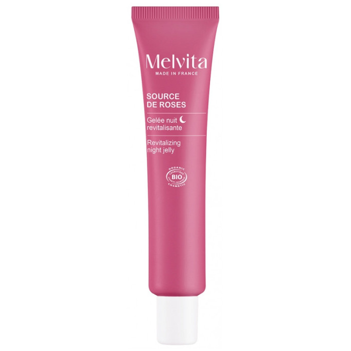 Melvita Source de Roses Gelée de Nuit Revitalisante Bio 40 ml est le produit idéal pour recharger votre peau en eau et lui offrir un aspect repulpé dès le réveil.