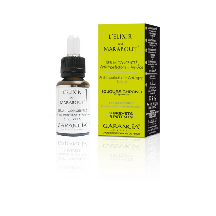 Avec le stress, la pollution, les cycles hormonaux, la peau peut devenir sensible aux imperfections comme les petits boutons, les pores dilatés et l'excès de sébum. C'est pourquoi le Laboratoire Garancia a mis au point L'Elixir du Marabout®, un sérum de beauté qui aide à purifier votre peau sans la dessécher ni la priver d'une action anti-âge.